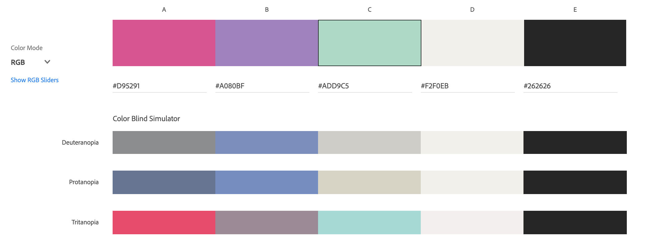 So it looks like this colour palette passes the colour blind simulator. It particularly works well for Tritanopia but less so for Protanopia and Deuteranopia.