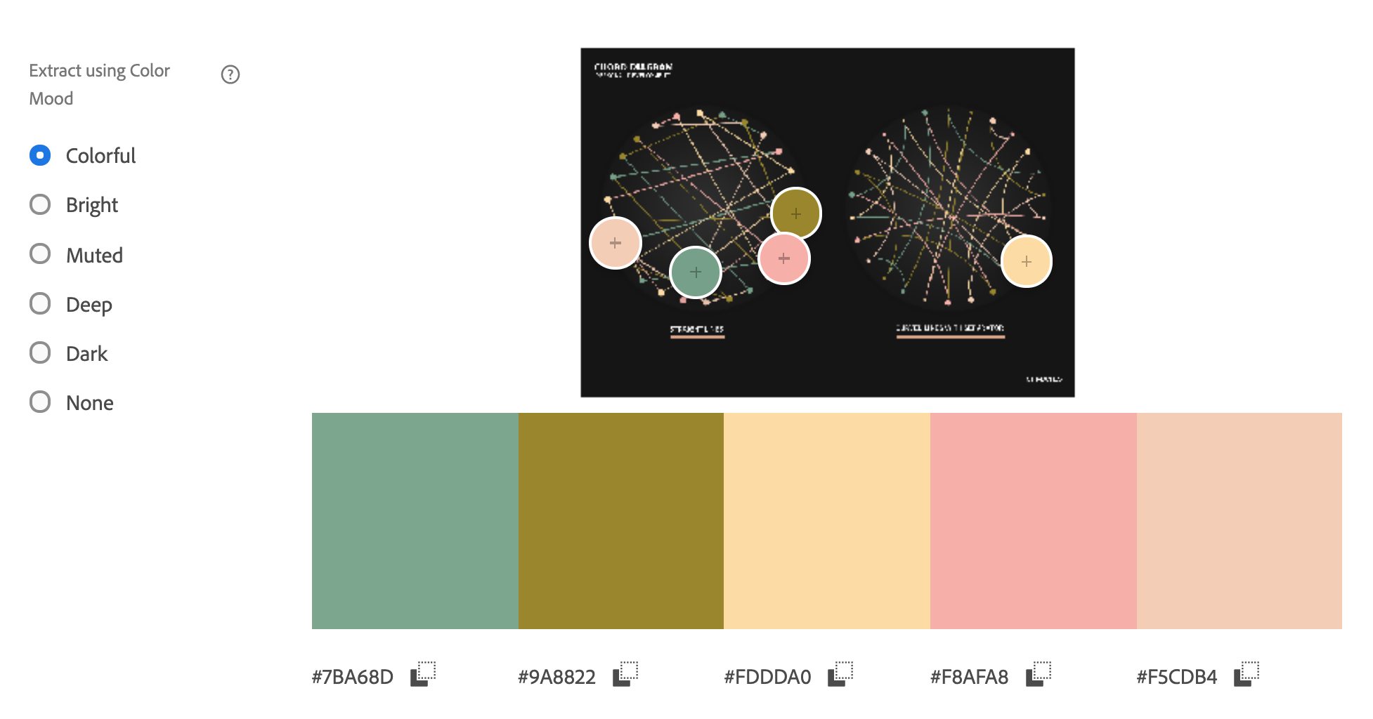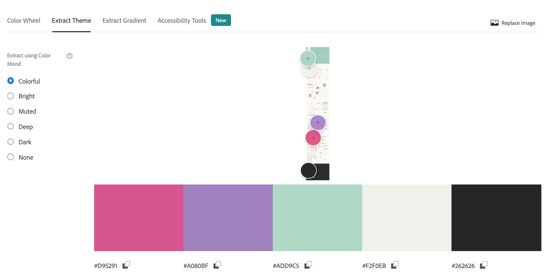 Here are some of the extracted colours from the screen.