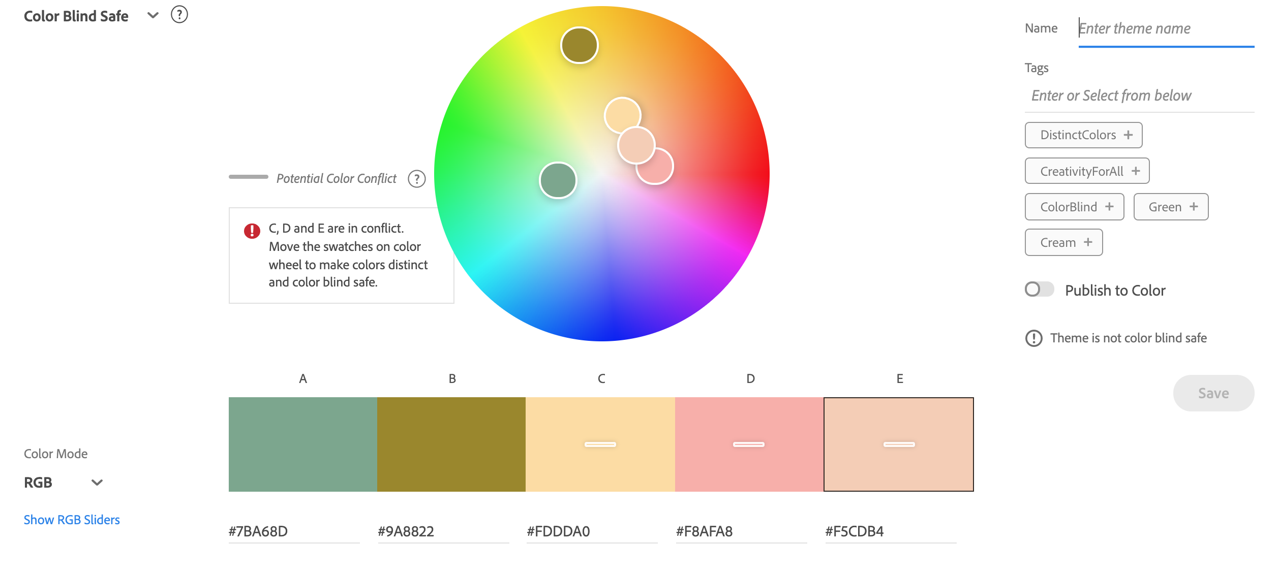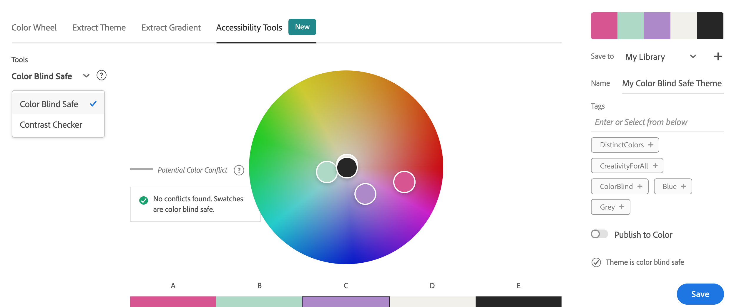 You can then go to the Accessibility Tools section, make sure from the drop down you click Color Blind Safe instead of Contract Checker.