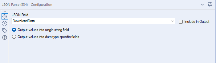 This, if successful with a code such as HTTP/1.1 200 OK, will download data in a JSON format and that will require the use of the JSON Parse tool set to parse a JSON Field called DownloadData.