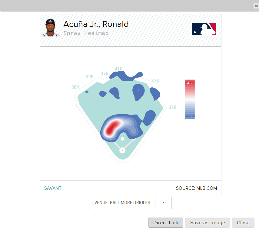 Heat maps aren't anything new, and baseball savant already showcase examples of spray heatmaps on their website. Our heatmap won't come out the exact same for a variety of reasons that we will cover off in the code.