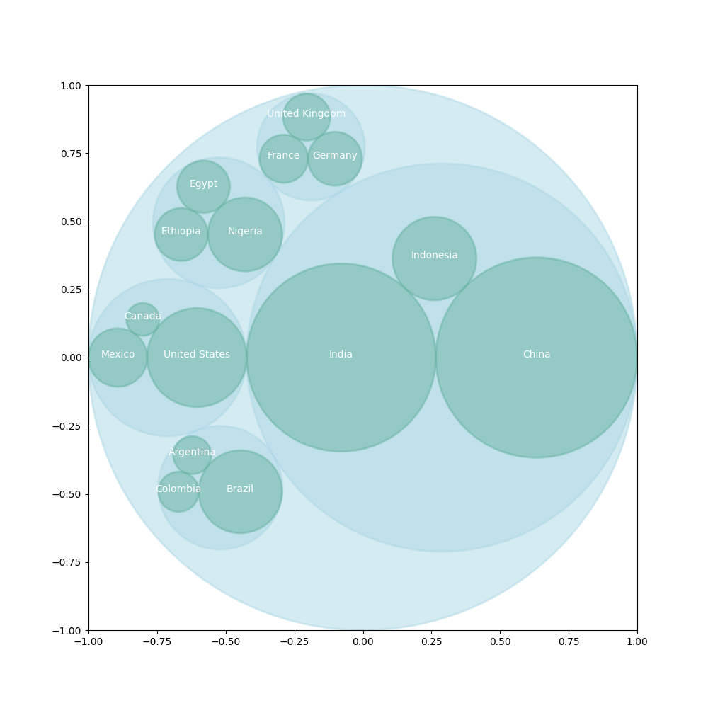 - It uses the circlify library to compute circle positions based on the JSON data.