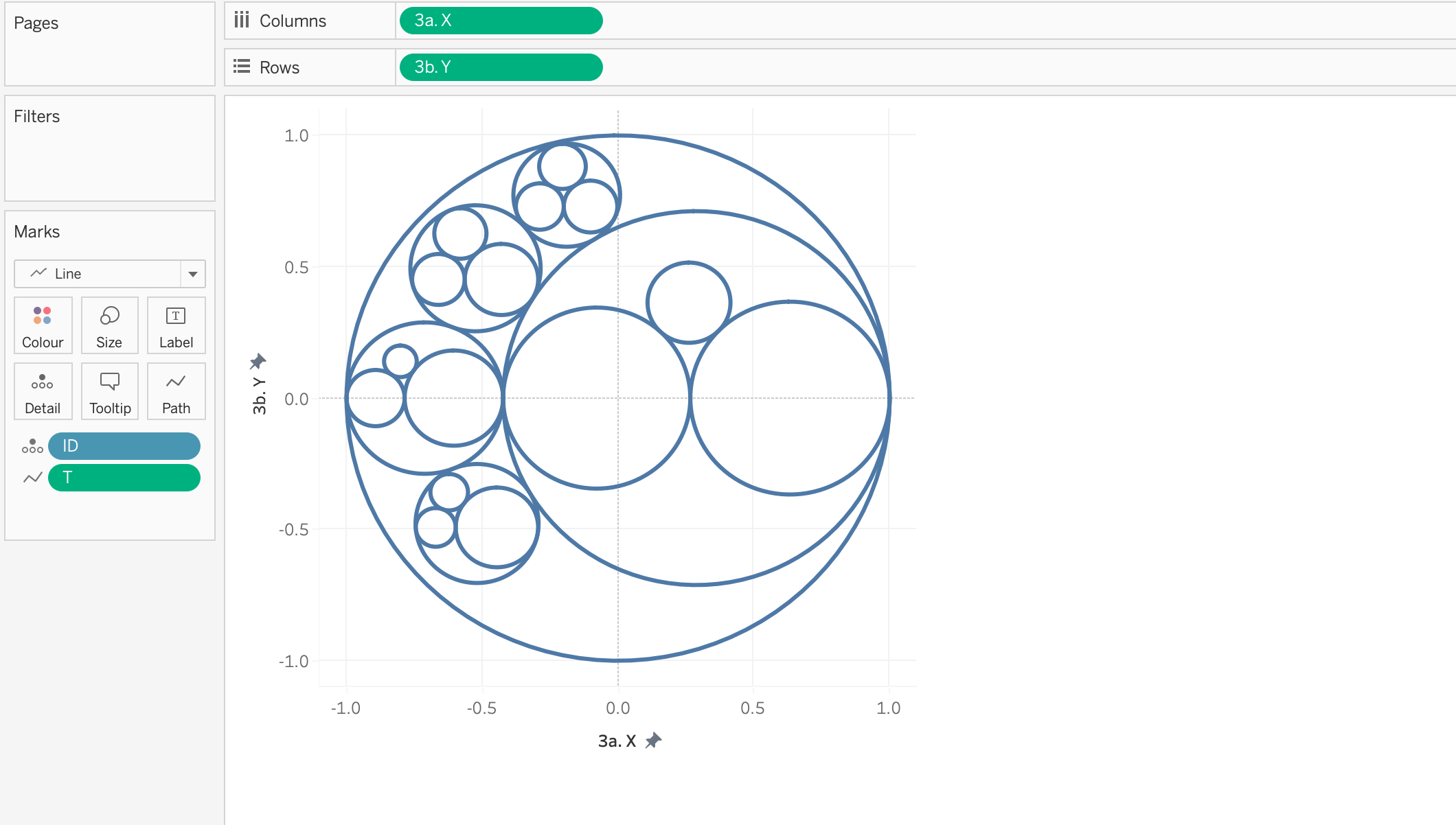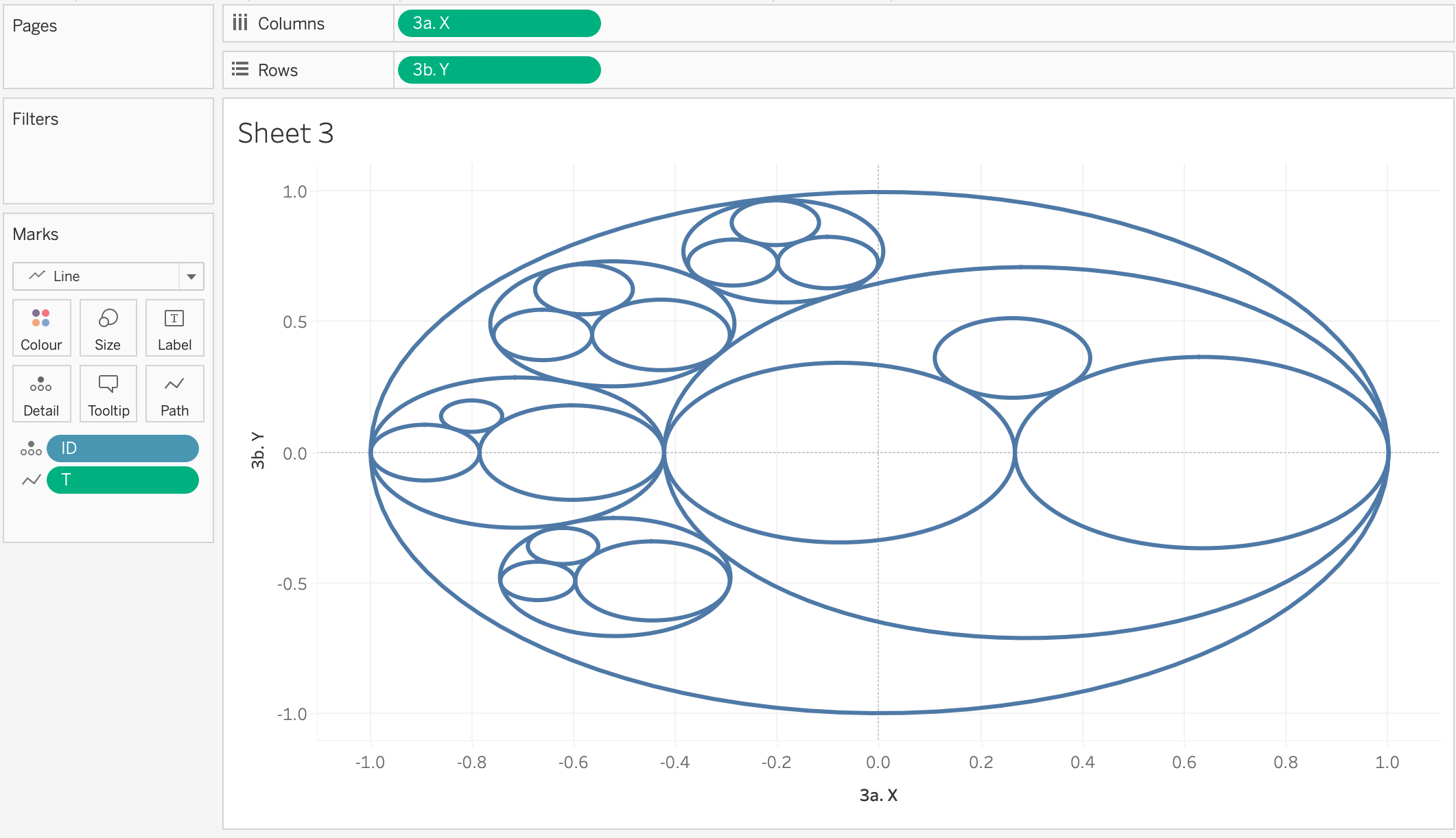 As further steps, I added a few more calculations 4a,5a,5b to the workbook to show how you can make the most of layering functionality to create some pretty cool alternative versions of the chart. They cover off how to make some of the circles lines and some as polygons. Download the workbook to see.