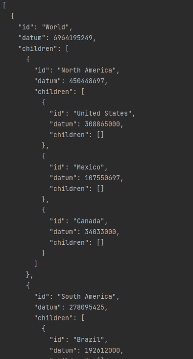 If you were to run this section of the code, it ends up reading from the csv, and creating the json ready for the circular packing tutorial.