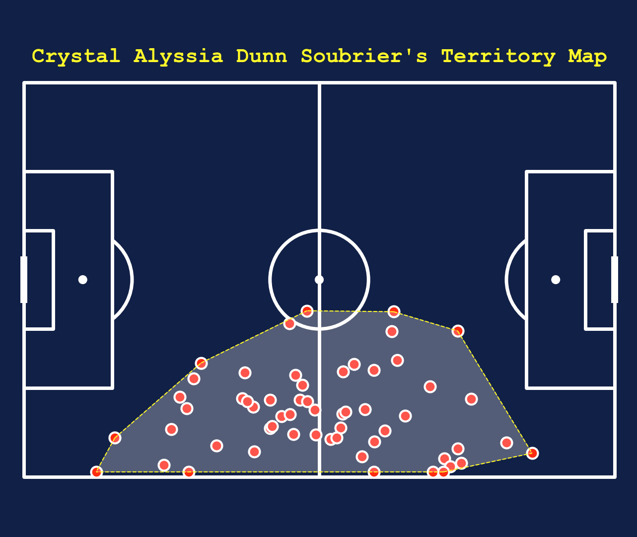 We pick to look at the US team and then find which players had made passes and take Crystal Dunn as our example to plot.