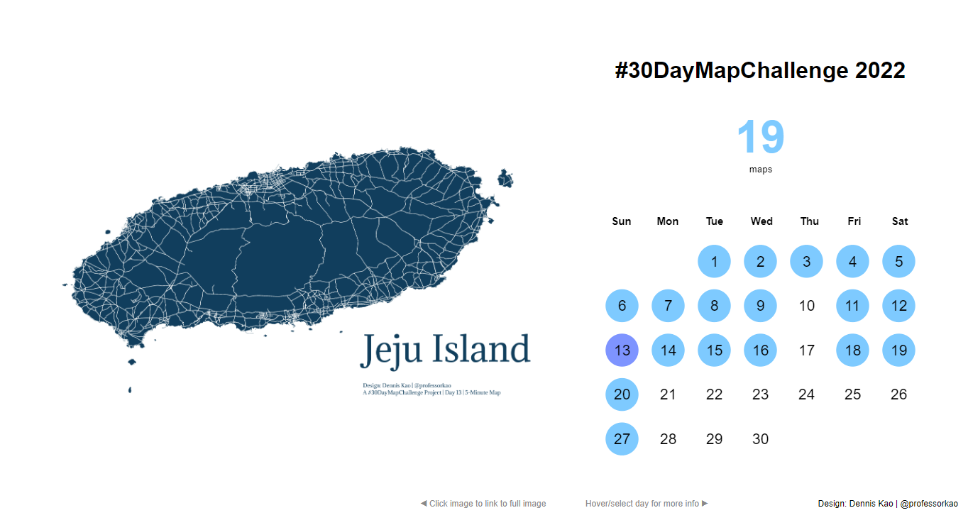 Day 13: Jeju IslandC: What advantages come with learning multiple tools, like QGIS and other tools that can become compatible with Tableau?D: Prior to discovering Tableau, I spent over 10 years mapping and conducting spatial analysis. I was initially trained using ArcGIS, but now mostly use QGIS (because it’s free and available for the Mac). And while Tableau continues to up its spatial & mapping game, I do think there are still advantages in having GIS in your toolkit.First and foremost, GIS software, such as QGIS or ArcGIS, are designed specifically to deal with the unique properties of spatial data. So, from adding layers to exploring the data to editing and creating new features, I believe the process is just easier and faster. They’re both designed as point-and-click applications and thus, have a lower learning curve. But you also have the option to use coding, e.g. Python, if preferred. GIS software provides a bunch of different tools that allow you to clean or edit the data and create new spatial features. Now, I almost exclusively use Tableau Public to visualize my final maps, but typically use QGIS to clean and prepare the data. At the beginning of this year, I started #RandomQGIStoTableauStuff to explore and share some of these features, e.g. grids or water lines. The key advantage – in my mind – for creating these features in GIS is that they’re hard-coded to the actual geography. So, when you bring them into Tableau, they function just like any other other spatial data file (e.g. shapefiles). For example, a grid is essentially a series of polygons that you can layer them, filter, zoom in and out, select, symbolize with color, label, and visualize in the same way you might do so with a map of the United States or Canada. In one of my visualizations, I paid homage to “The Thomas Guide” and used a grid created in QGIS to allow the reader to click and zoom in specific areas of Los Angeles County.C: For those looking for map viz inspo, what are some of your favourites be it from Tableau or further afield?I’m continually inspired by the #DataFam, but a few that immediately come to mind are: Wendy Shijia (@ShijiaWendy), Naresh Suglani (@SuglaniNaresh), and Damola Ladipo (@AdedamolaLadipo). . I also love the earlier stuff by Ken Flerlage (@flerlagekr) and Adam McCann (@adamemccann). I would also encourage you to check out the 39 maps that folks did for the #IronQuest challenge back in March 2020, which focused on maps, here.When I was first making the transition from GIS to Tableau, I found Marc Reid (@marcreid) particularly helpful. Finally, my approach has also been informed by the work of Sarah Battersby, who wrote extensively about QGIS and Tableau.And be sure to follow the #30DayMapChallenge that occurs in November…and be prepared to be absolutely blown away by some beautiful mapmaking.CJ: Now you know I’m a huge fan of your typefully and the post you put up around 10 things you can do in QGIS to enhance your maps in Tableau. Could you give us a beginner’s guide to how you created your water lines visual?