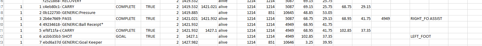 The second thing is, some events need to be excluded from the sequence. You'll see in my data there will be additional rows of position of players.