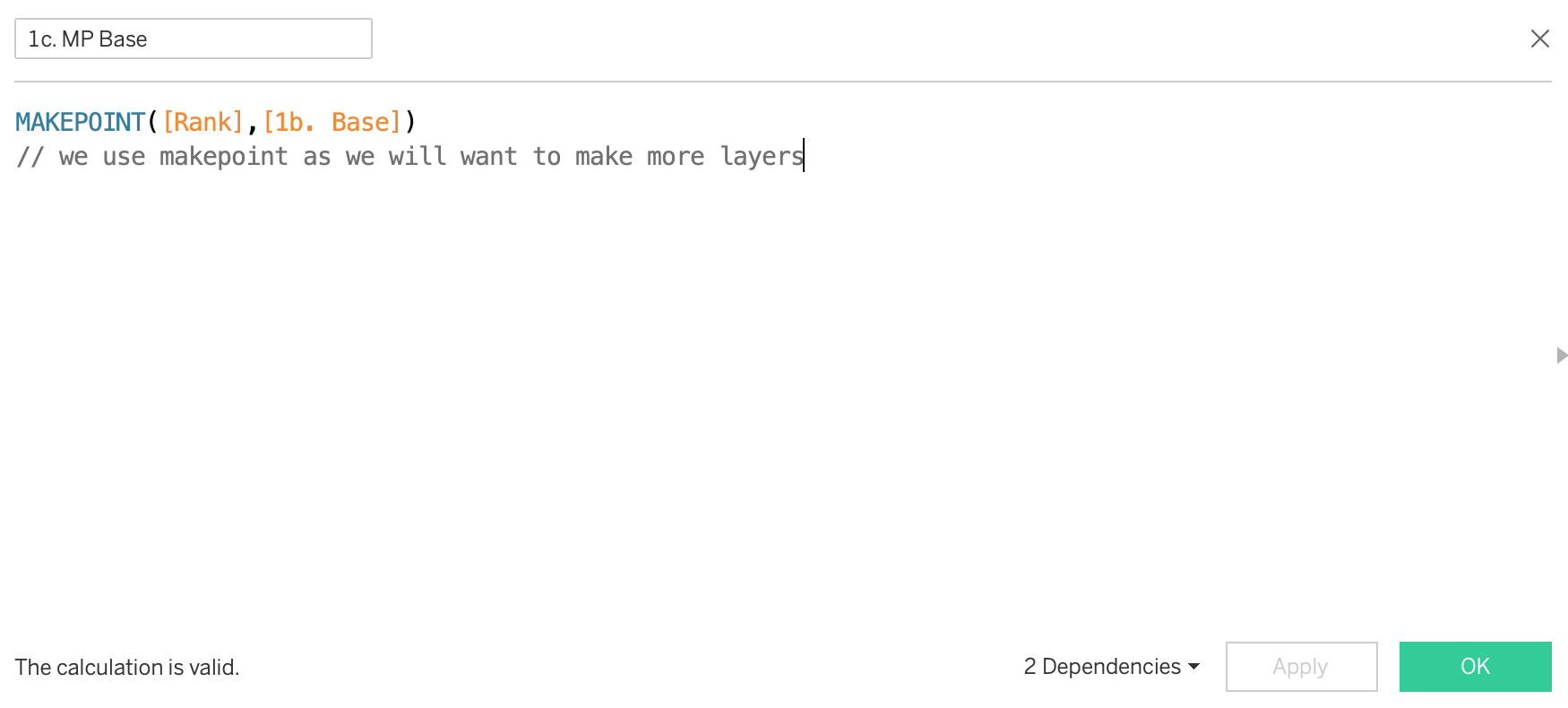 - Double click the 1c. MP Base calculation to add it to the sheet.