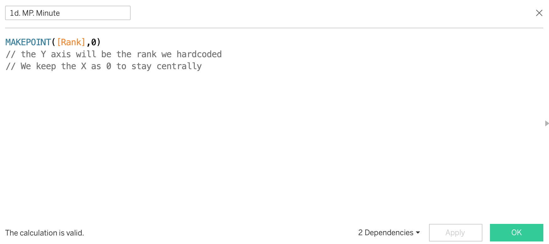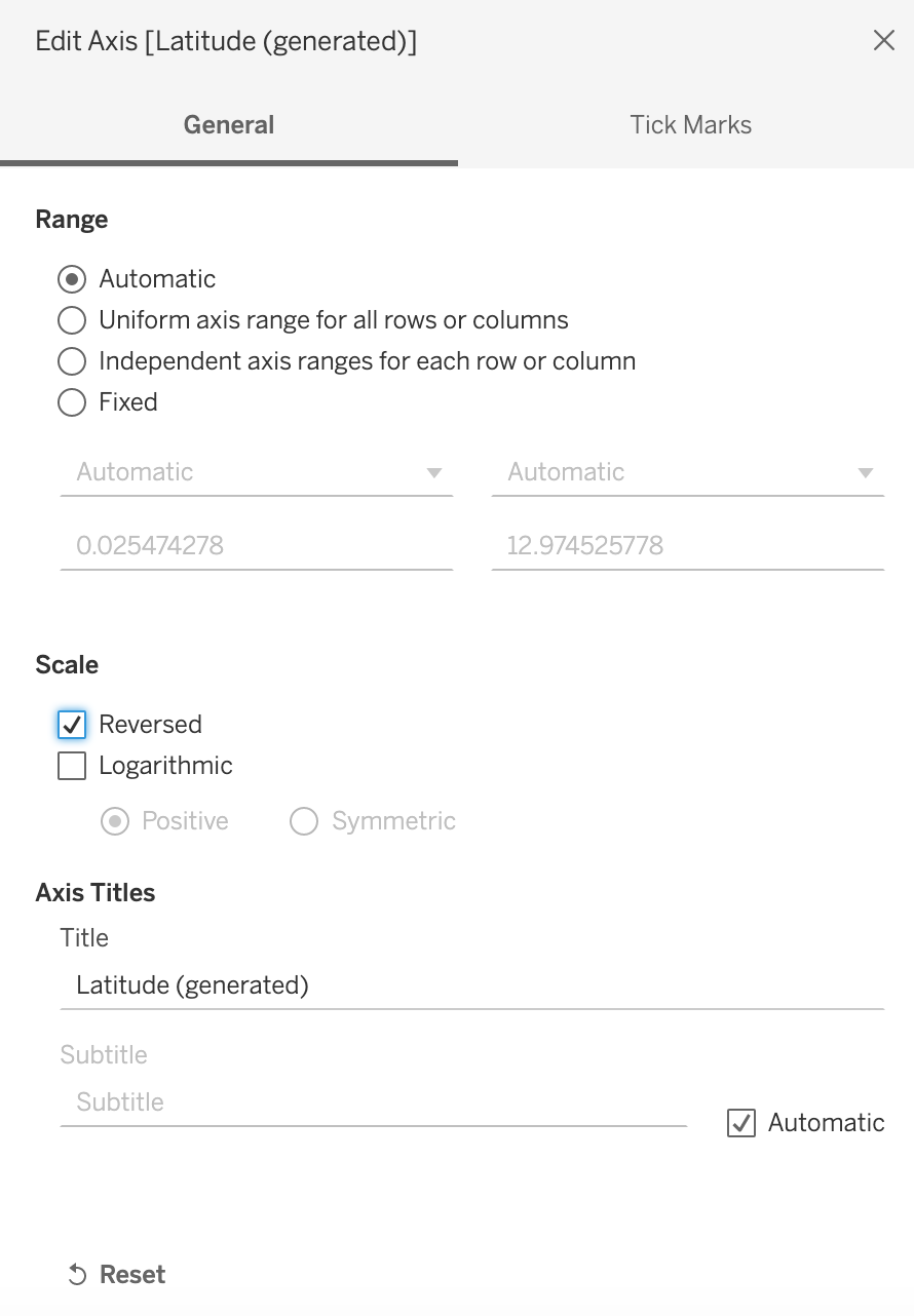 Drag Minute onto the label and make a dimension. You will notice that our minutes are ranked in the wrong order. Right click the latitude generated y axis and click reverse.