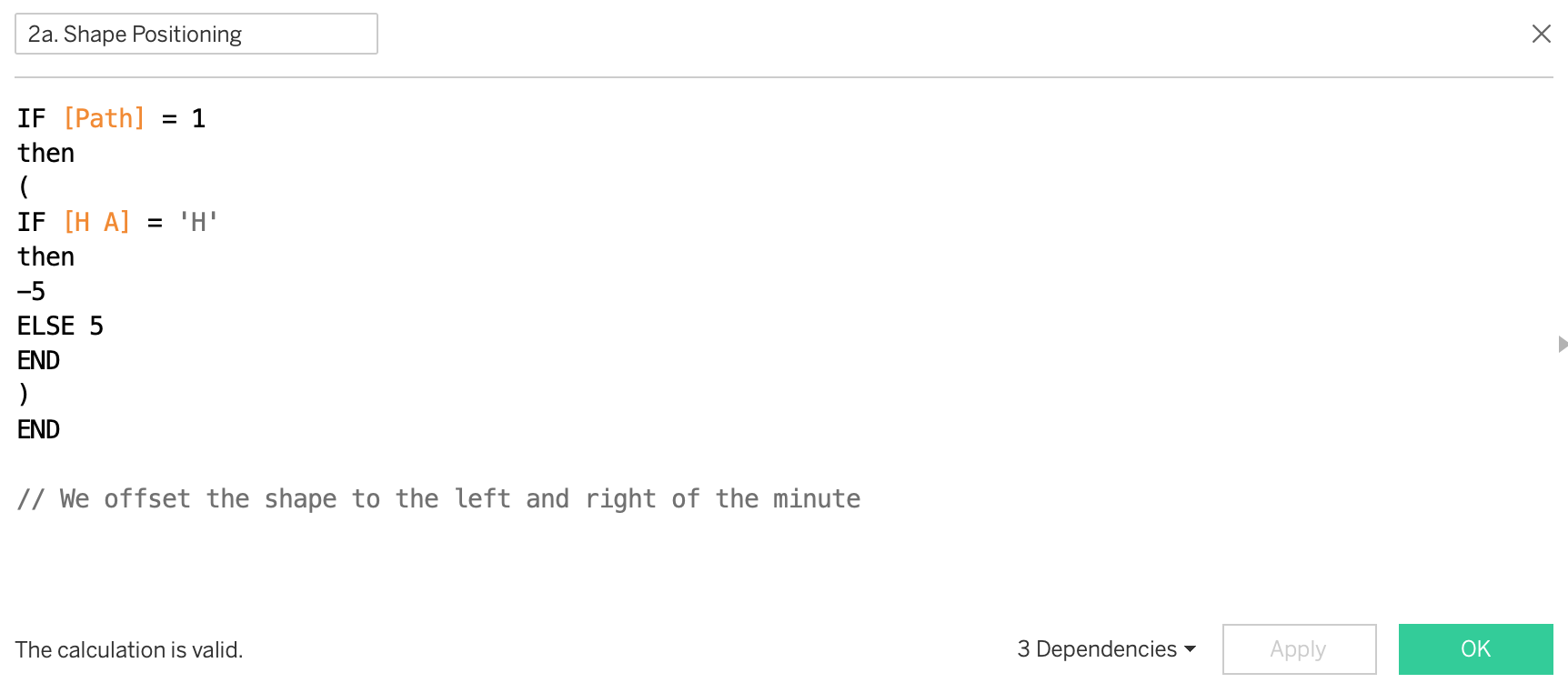 Within that, is an if statement. We want to create a shape for the event (substitution, goal etc) but we will want to offset it slightly from the middle as our minutes already take up that space. So we shift all the home shapes slightly to the left, and all the away shapes slightly to the right!