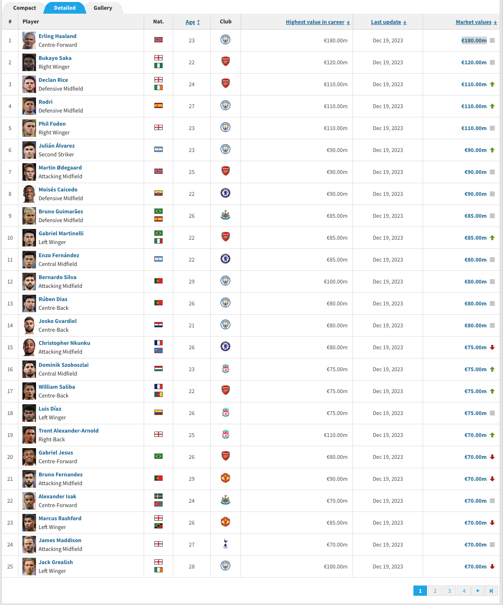 **One thing to note here is i am taking the highest value the player has reached instead of the current market value.**