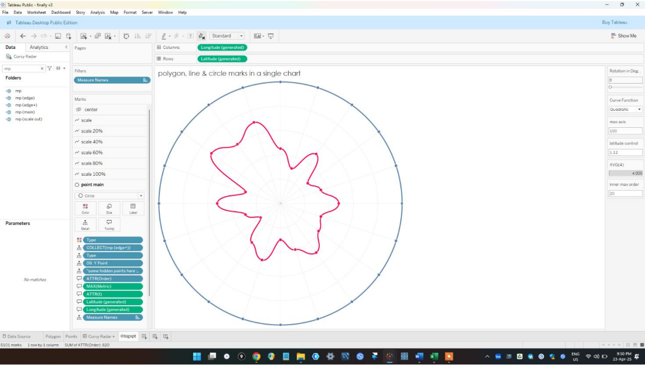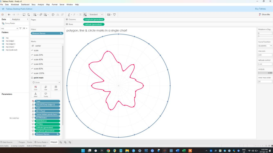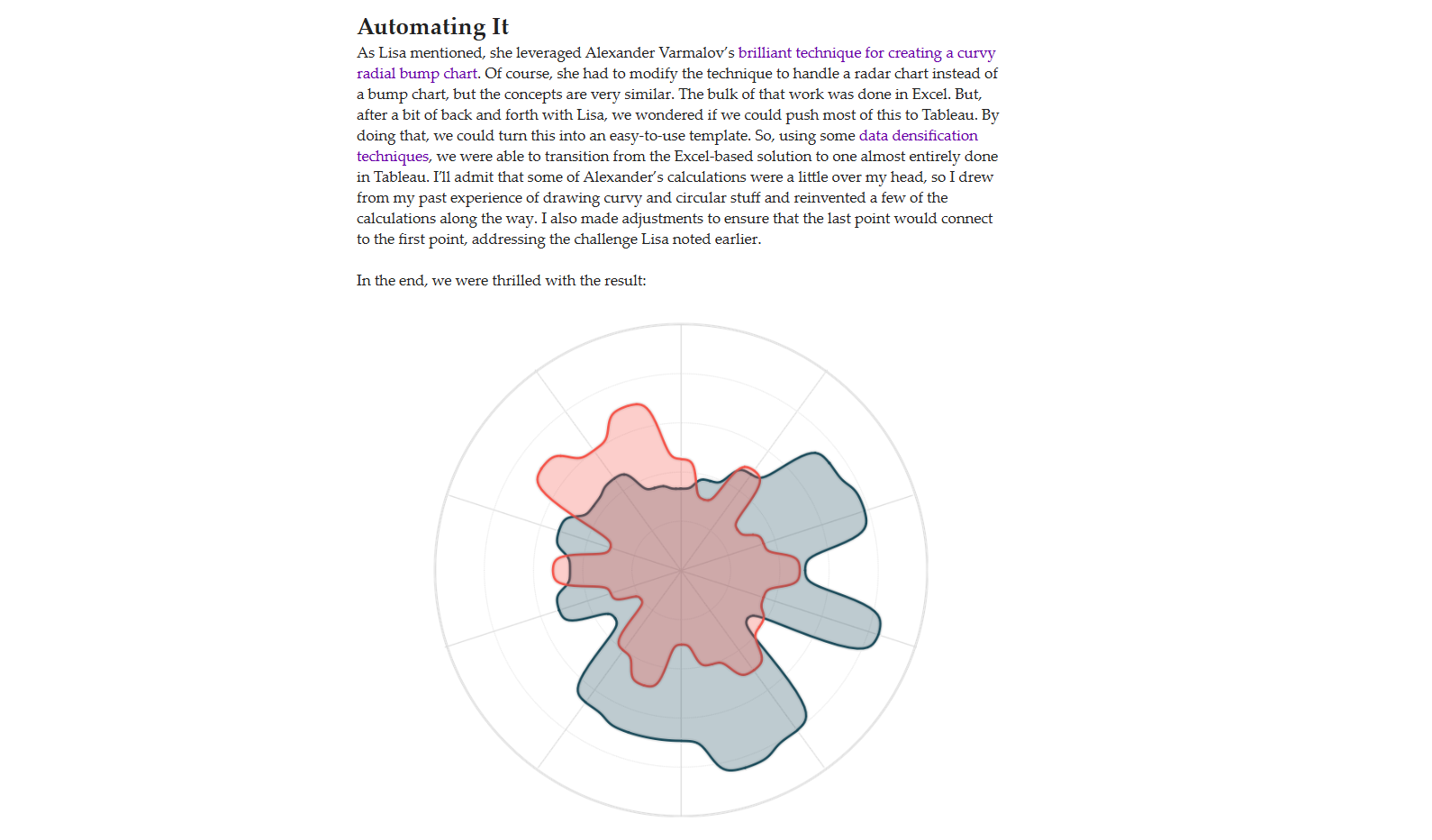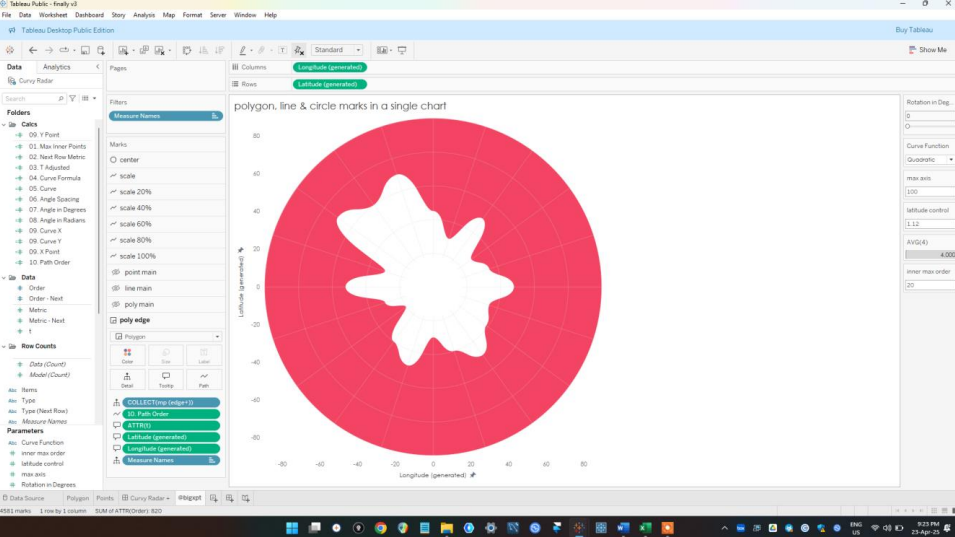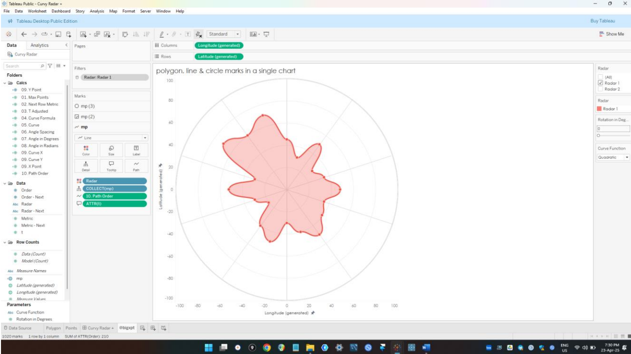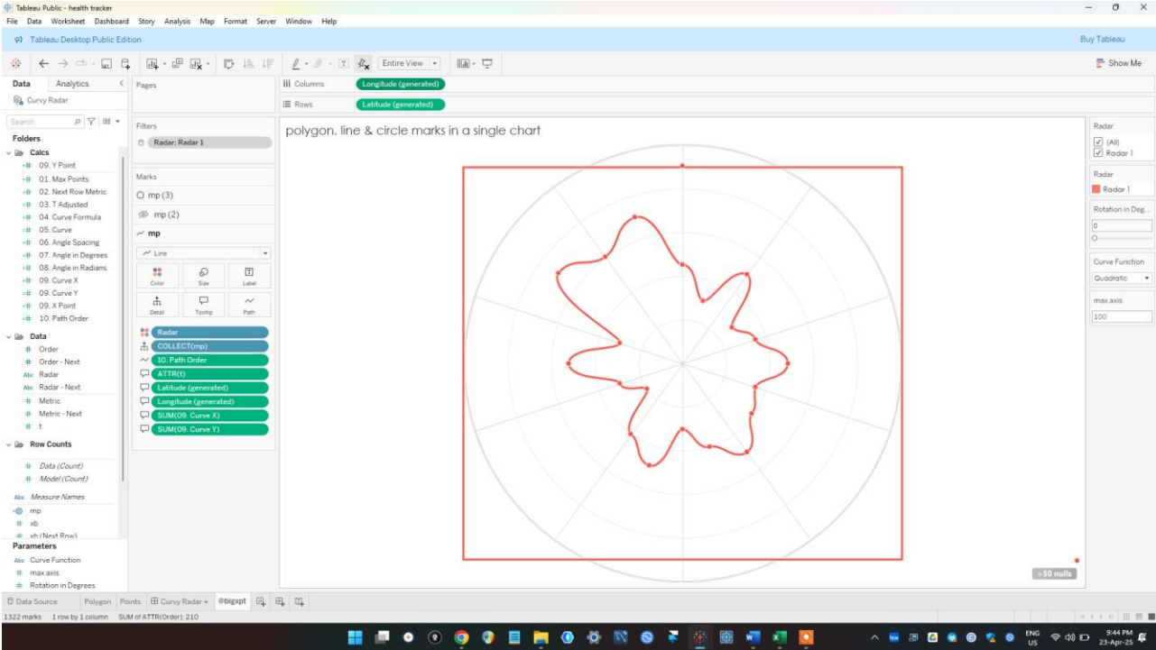 Sincerely I think the credit needs to go to Ken Flerlage who with Lisa Trescott and Kevin Flerlage created the first curvy radar on Tableau. I was trying to build a curve style radar and so I remembered that I read Ken’s article on that sometime ago. So I went back to