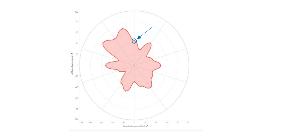 So, I thought, what if we extend this data point from the last point, so that it goes rectangular around the data view and back into the radar shape meeting with the first data point. This was what I had in mind.