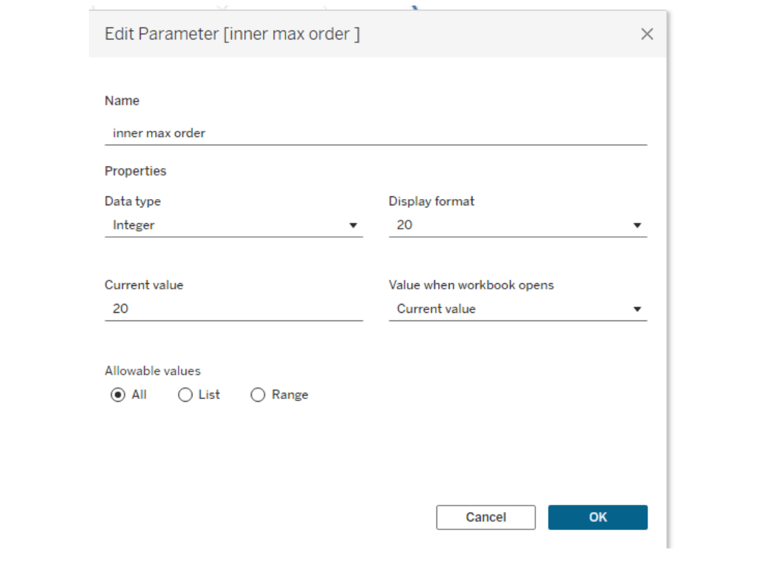 First, I created an integer parameter and named it inner max order. This was the maximum order value in the inner polygon which is 20.