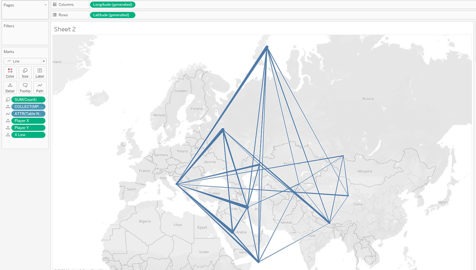 Double click MP Lines to bring it into the view, then add the required dimensions to the marks card. Make sure ATTR(Table Name) is on path. This is because where we have unioned the data we want to connect the points to create the lines!