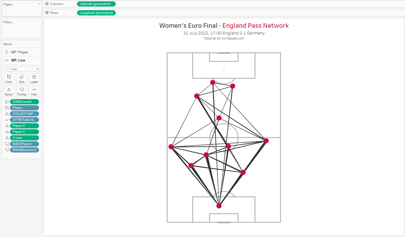 This week we return to some more soccer content. This time looking at how we can create Pass Networks in Tableau. I am a bit of a broken record when it comes to talking about different data tools, but I am on a journey of wanting to highlight to those in the sports community that dabble mainly in R and Python, that they can also create visuals in Tableau (and vice versa of course!)