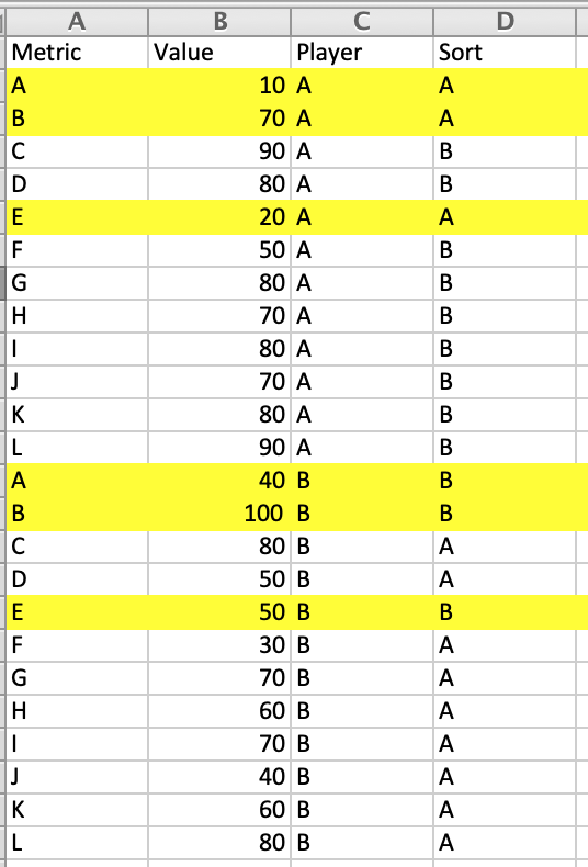 Recently, I've had a few messages about how to add in a second players metrics and the ability to sort the values so that the lower value is on top of the larger value.