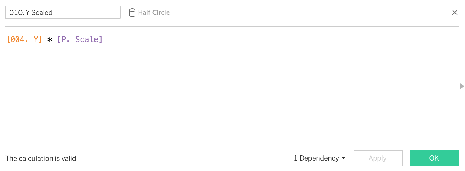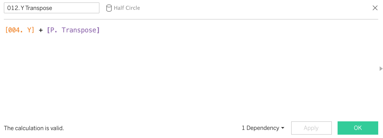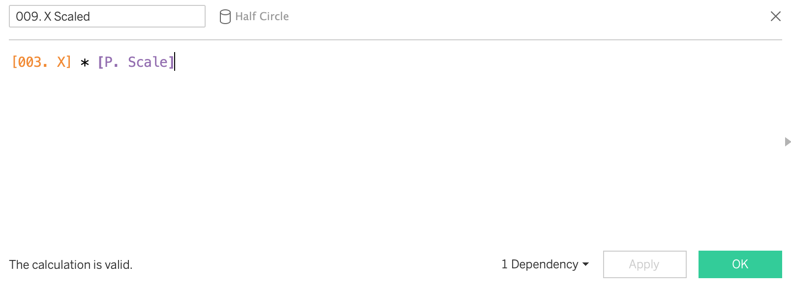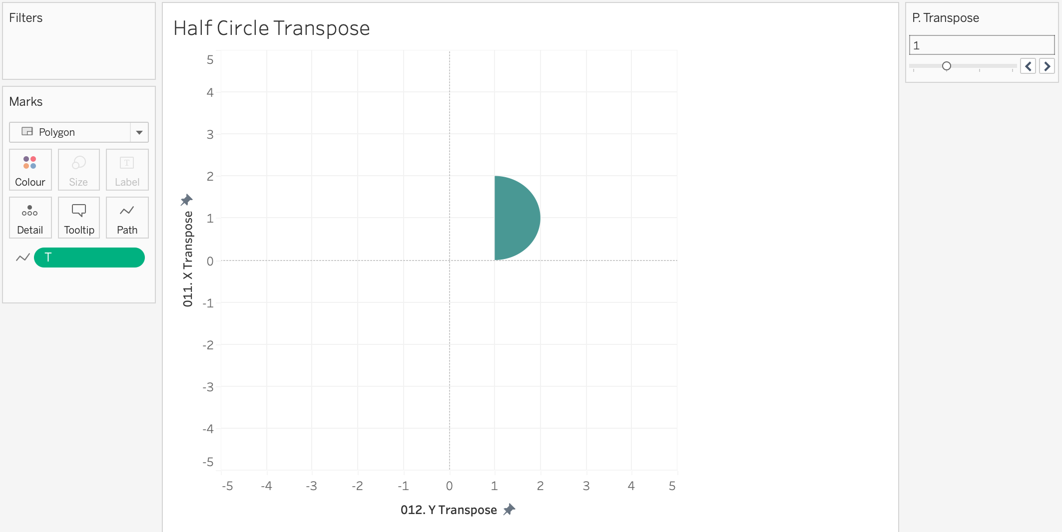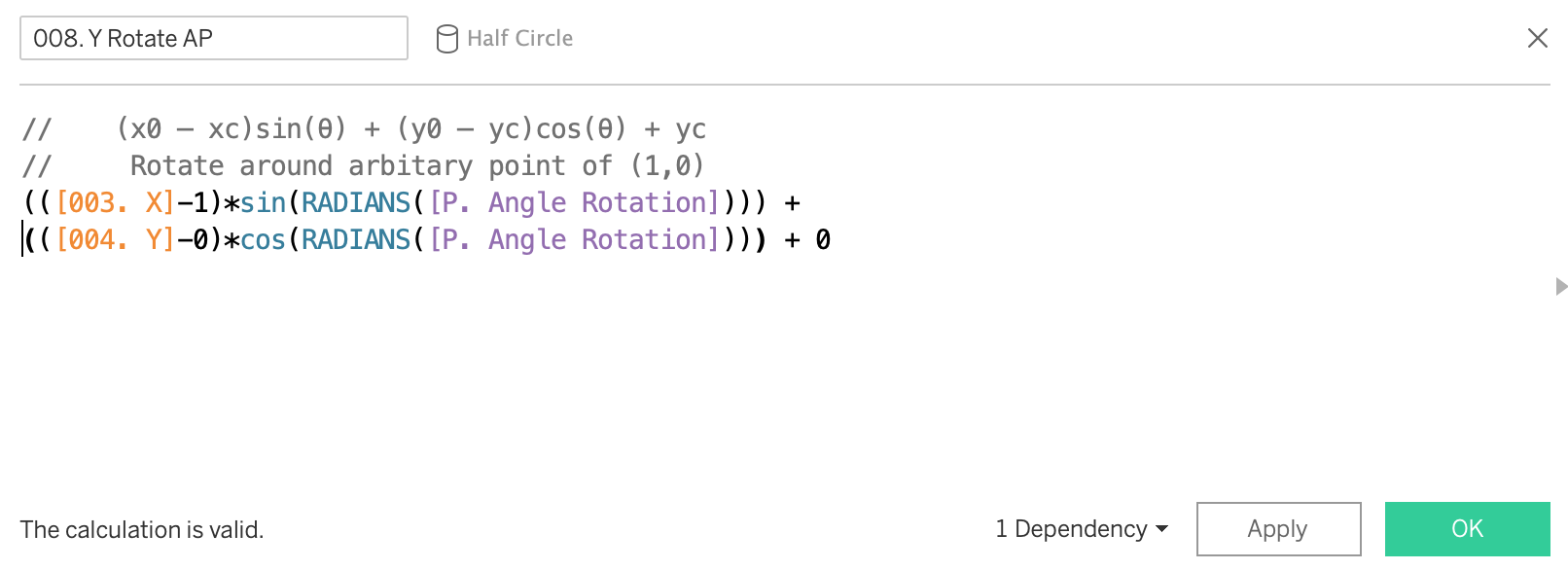 You will also see a column called 'proportion of full' - this is a hardcoded value I've used in order to size some of the semi-circles into random smaller values. The final viz uses the calculation of rotation around the origin (0,0), not an arbitrary point.