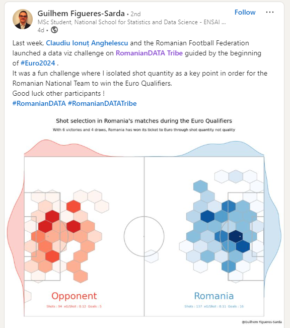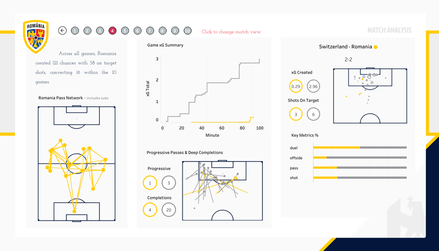 It was a collaboration with Federatia Romana de Fotbal Intelligence Centre and Andrei Angelescu. Their aim to analyze the road of our national team that culminated in the qualification for the Euros 2024.