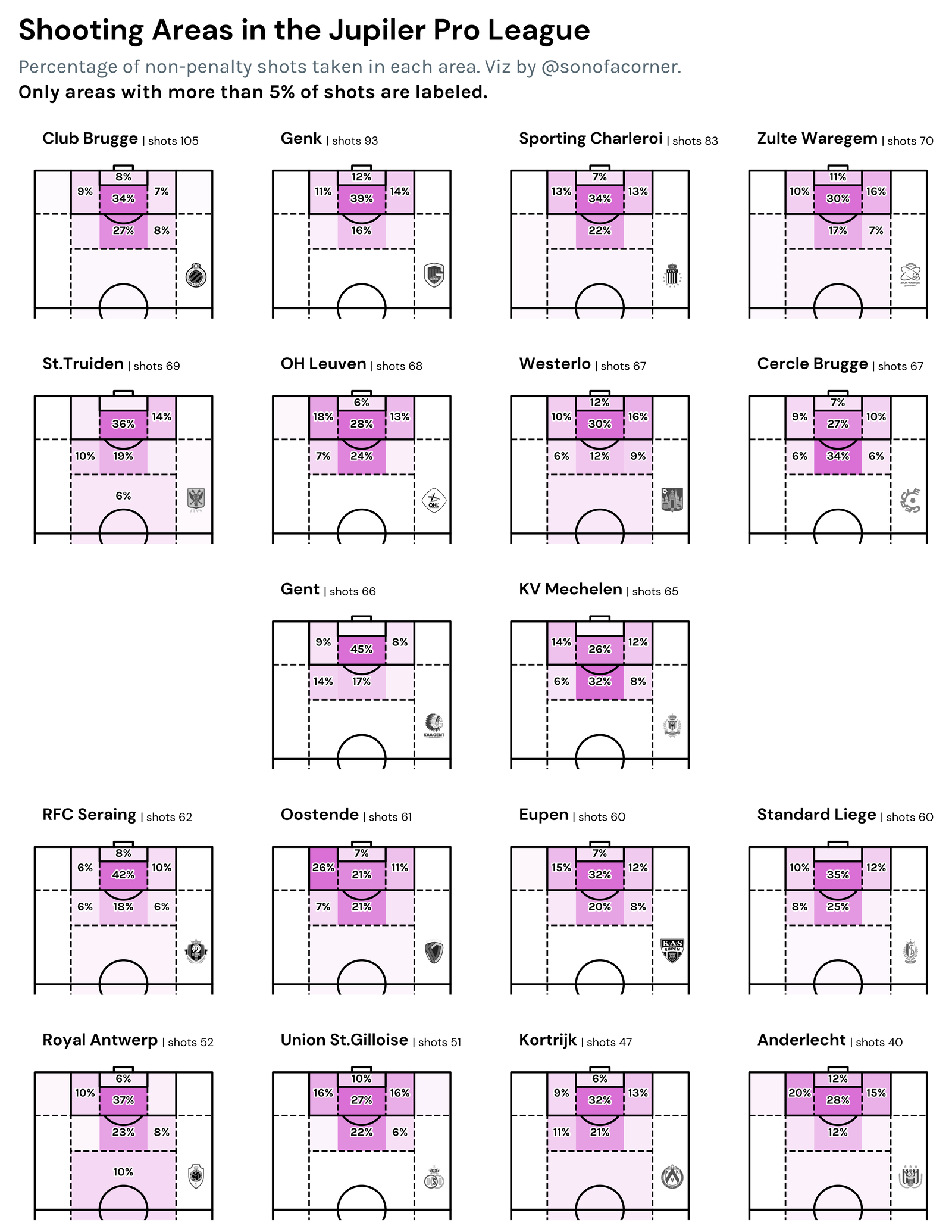Well I came across this paper looking at flanks and out of the box shots and started digging a bit further. This lead me to this shot matrix created using Opta data.
