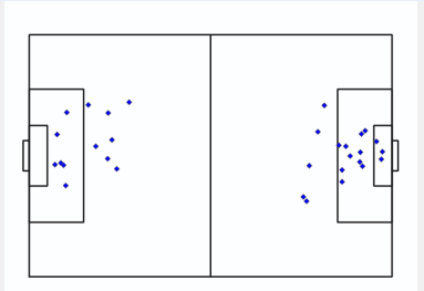 We can create makepoints of our x and y co-ordinates of the shots to plot the different teams. You will see they resemble the chosen match from Understat.
