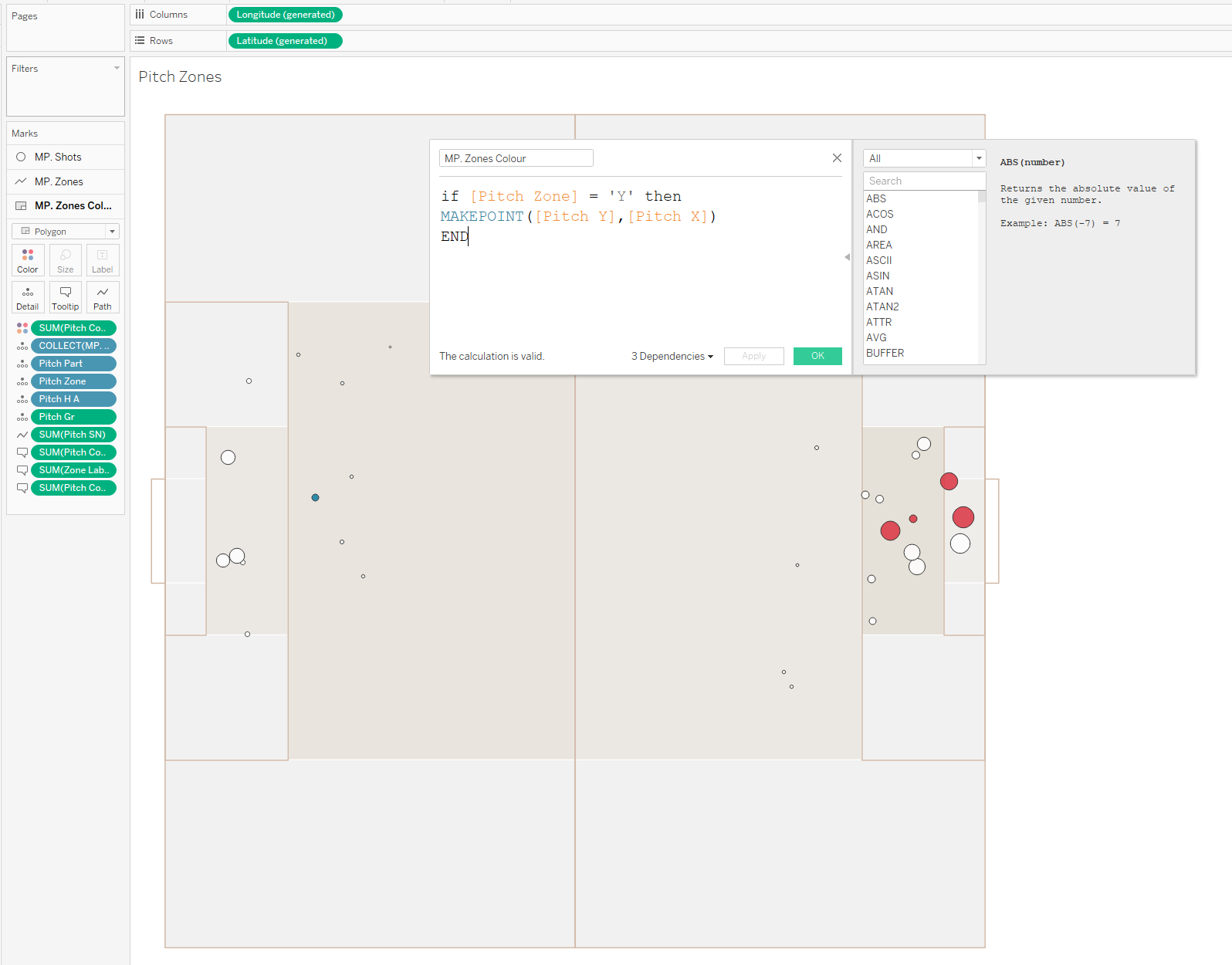 Create points and build spatial tools help us build our pitch and zones.