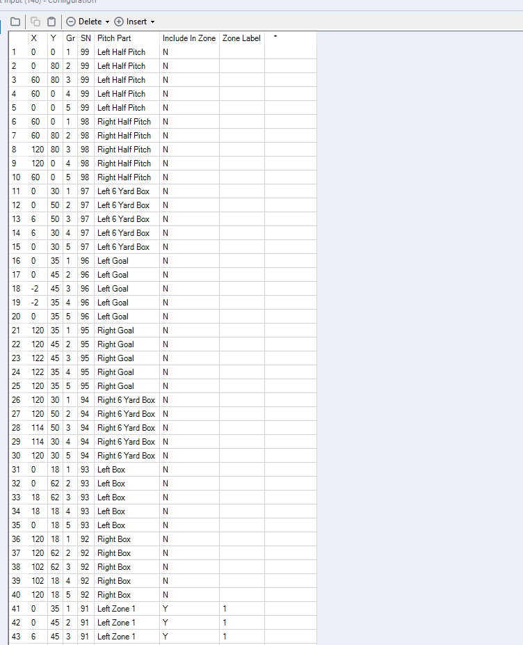 So the input data here is all the pitch points (Where Include in Zone = N) as well as our mapped out zones (Where Include in Zone = Y)