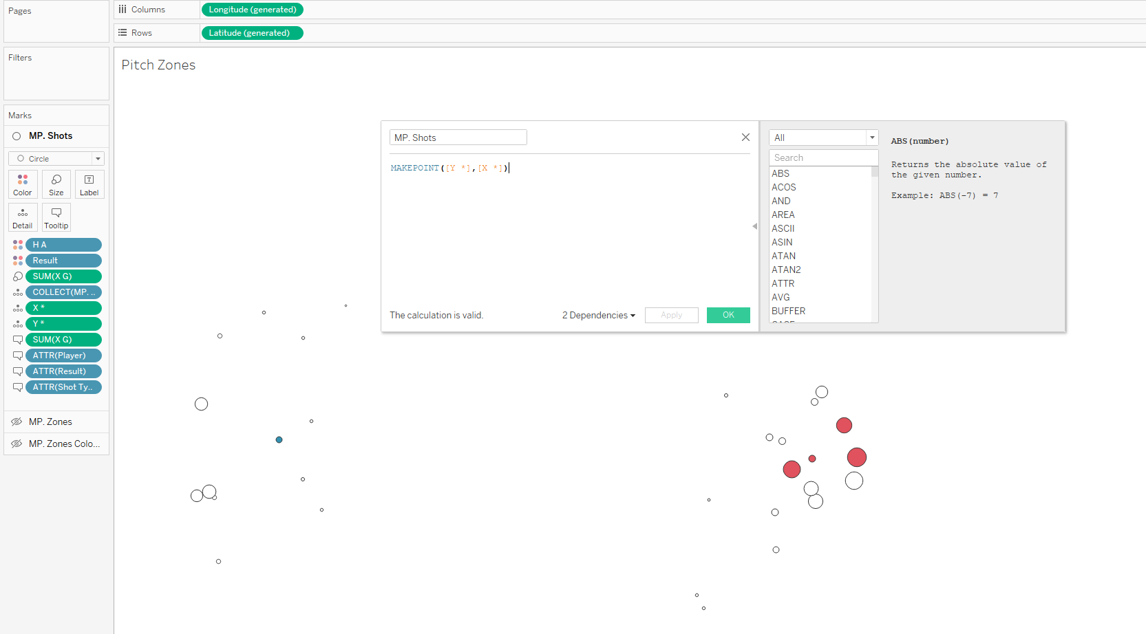 The formula tool scales our pitch to the same amount as our shot data.