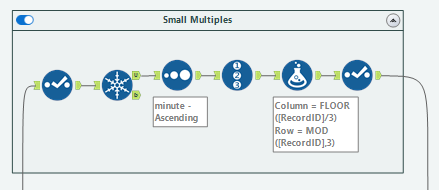 The Small Multiples part of the workflow is personal preference. I like to assign the columns and rows of which each shot is before hand so it doesn't mean I need to calculate along anything in Tableau.