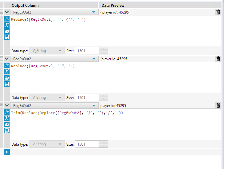Now whilst I would love to use the Json parse too to solve this challenge, it doesn't always work as expected depending on the format of the json (not to mention id have to do a string replace for the quotations to be double quotes), so we have to turn to some regex to be able to split the different parts of the data we need.