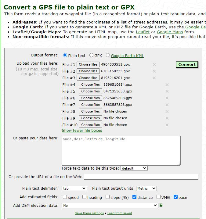 We will need to output these files to plain text. I will upload an example of the output into the GitRepo. You'll see in the printscreen above, I chose all the gpx files of where I ran at least 20km's.