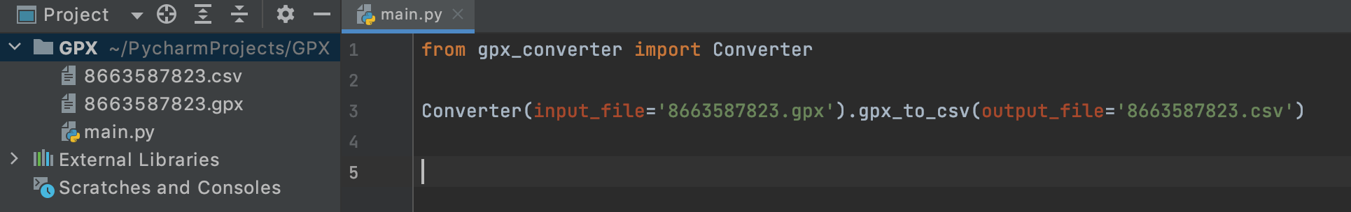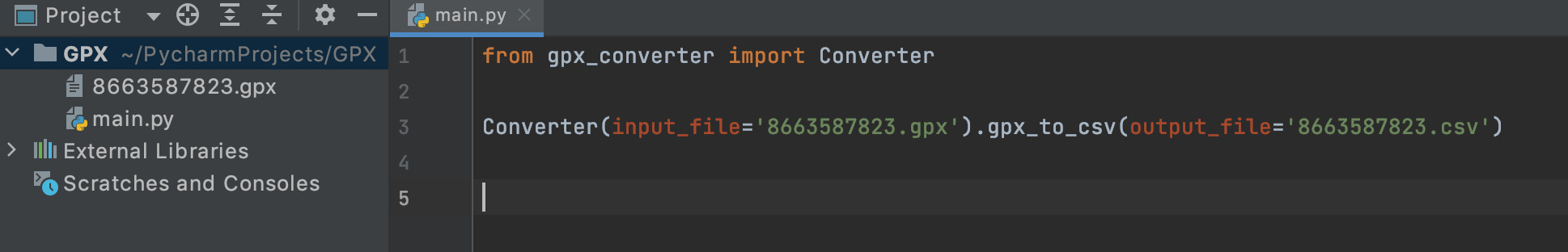 All we need to do is update our code with the correct input file name and output file name and we are ready to hit run. For me, I've left them as the original strava activity numbers from my Strava page.