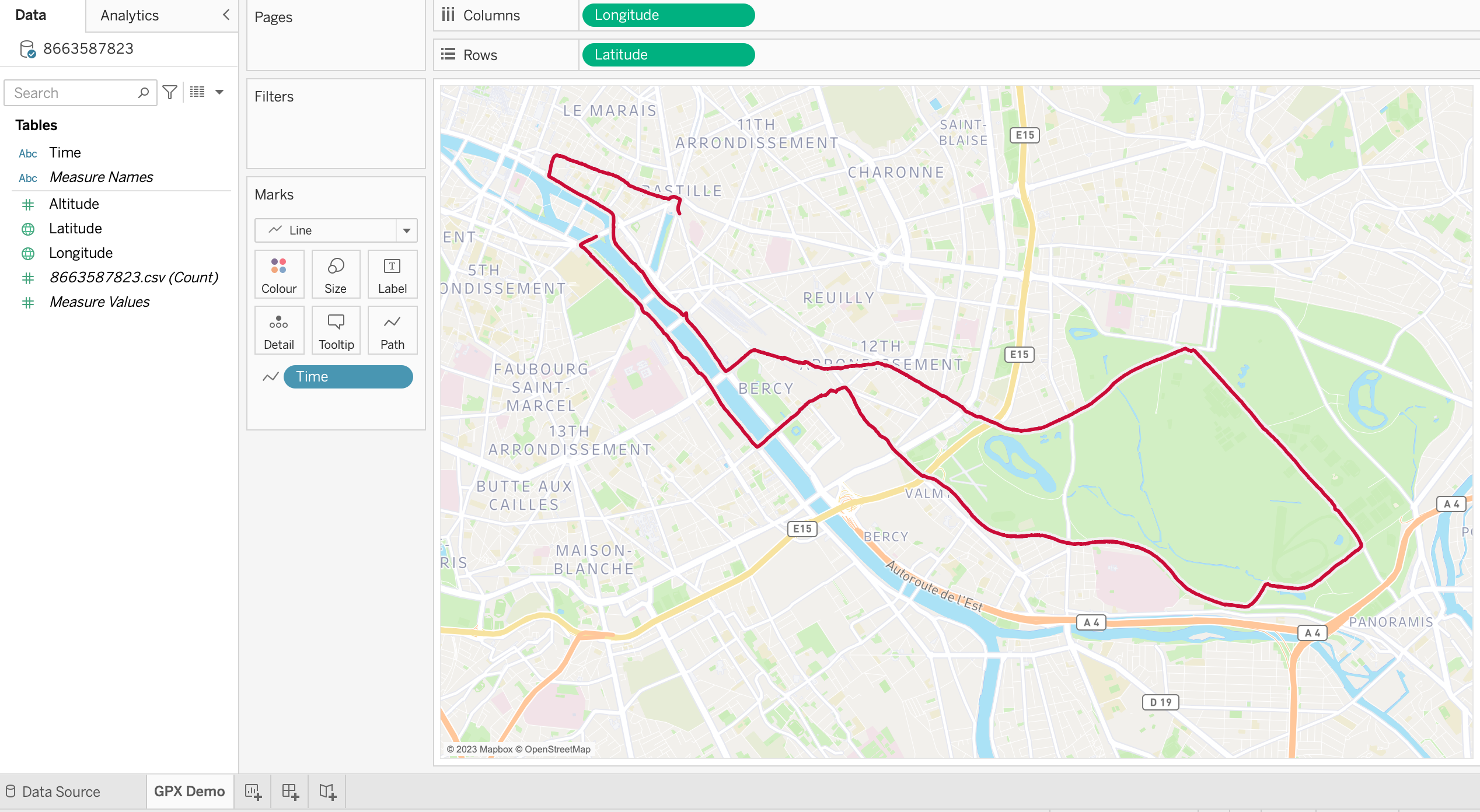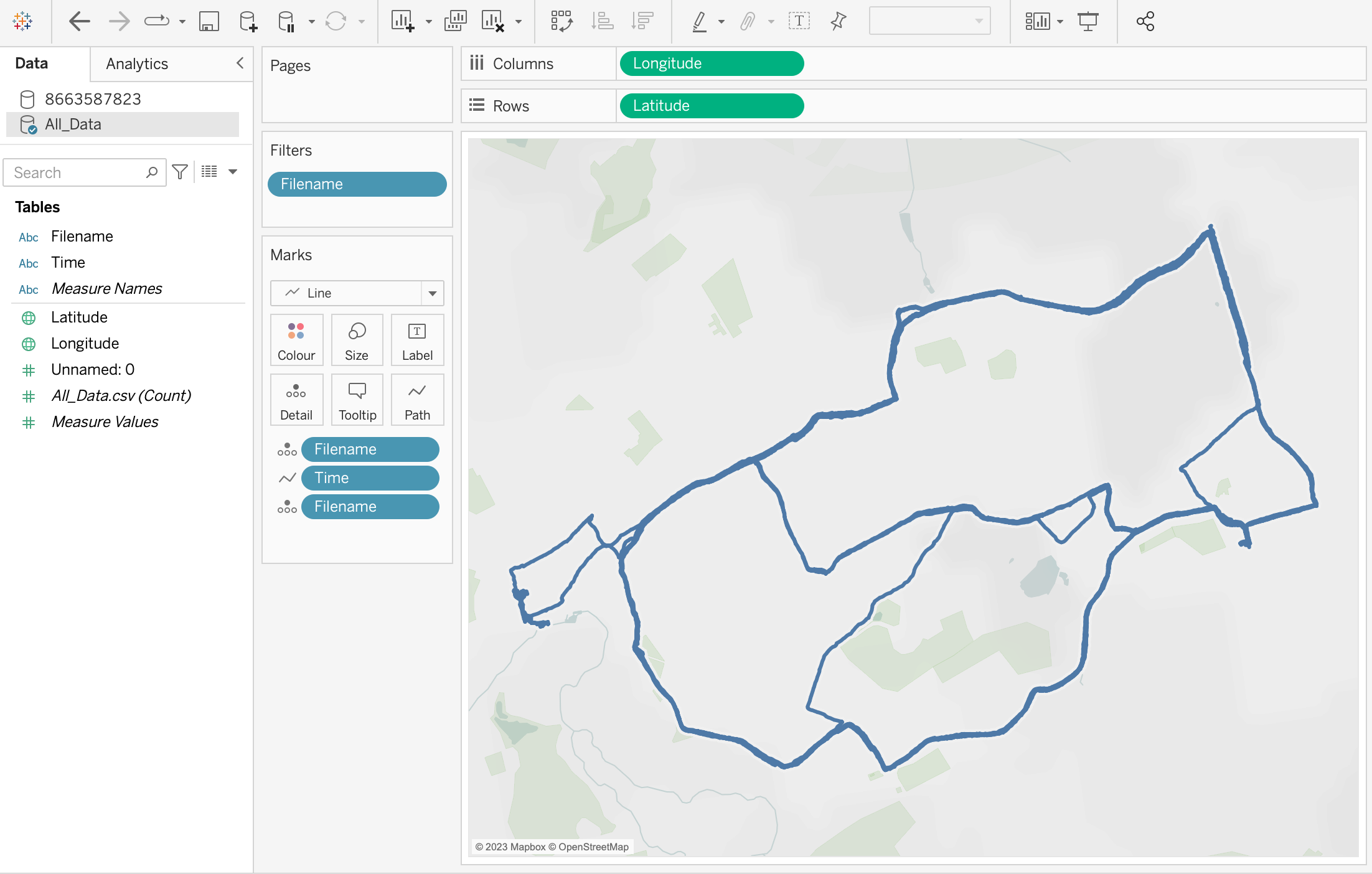 Looks pretty spot on. Do note, we need Time on path for Tableau to know in which order to draw the path for our longitude and latitude points.
