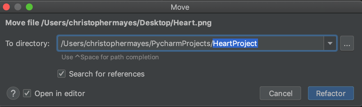 It will ask to refactor, once you've done this it will have added the file into your project directory.