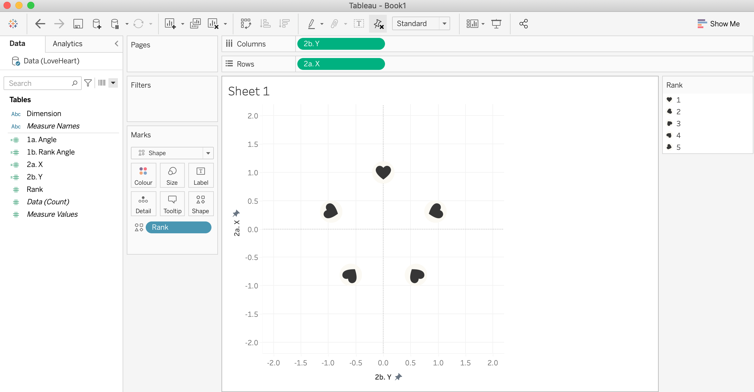 Change the marks to Shape and drag Rank onto shape. Find your repository and click apply.