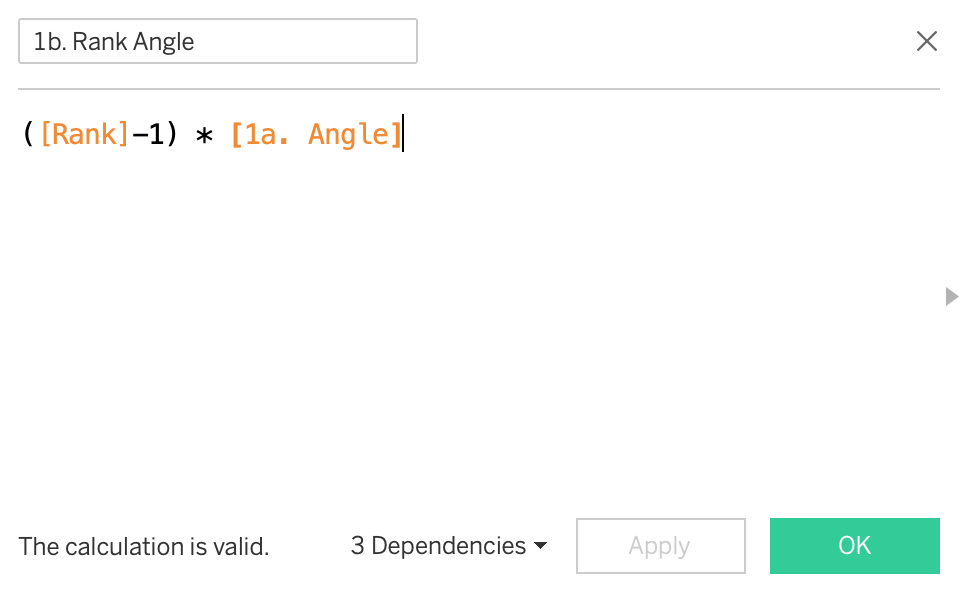 Rank Angle - Taking the order of the points, find the angle around the circle of where the next point is situated. You will see I have added minus 1 to the calculation in order for the top image to be the first one and not the last in the circle. This is my alternative to using an index function.