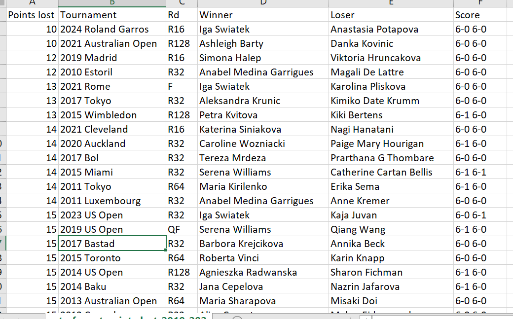 The first was Iga Swiatek lost ten points in R16 of the French open. Total. That matches the most dominant tour-level performance--any tournament, any round--since 2010.