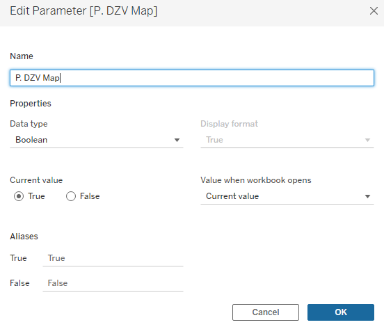 Lets create a new parameter. Again, a boolean field. Call this parameter DZV Map.
