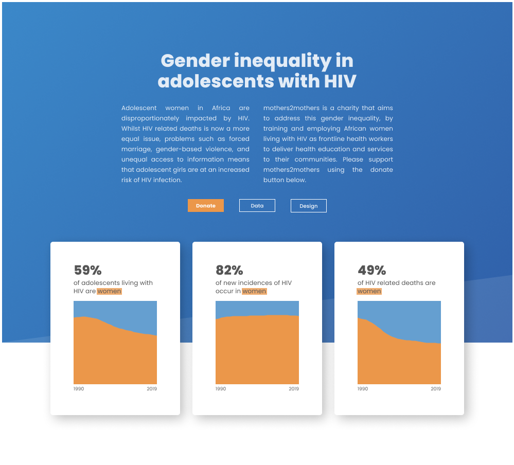 Let’s use my recent ‘gender inequality in adolescents with HIV viz’, which perhaps isn’t my most popular viz or the most interesting design, but I do think it’s quite instructive in terms of my overall design process.