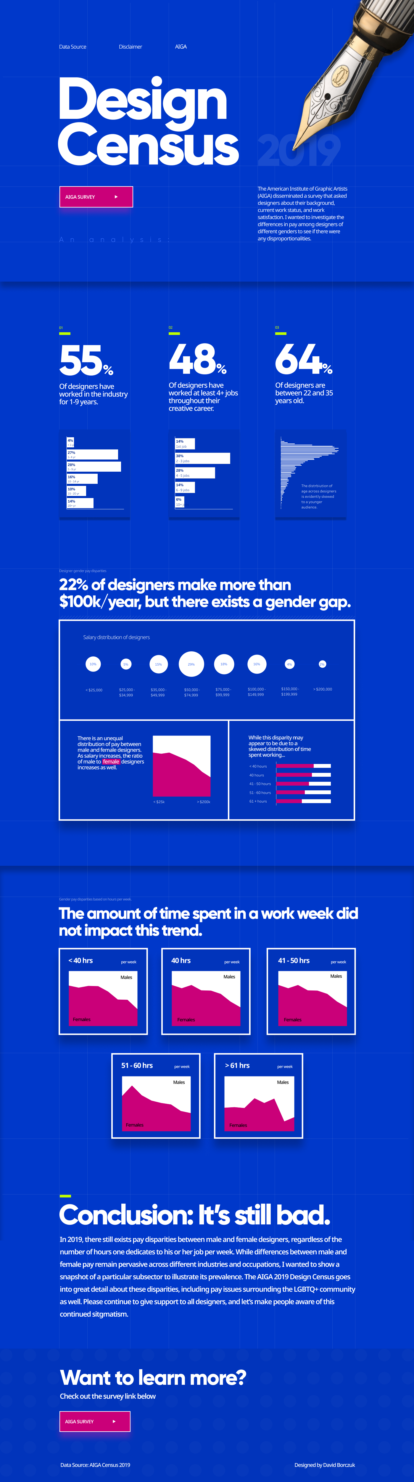 An absolutely brilliant viz, particularly from a design perspective. There’s so many little touches built into it - those gridlines running down the page, little highlight lines above the key metrics, drop shadow on the viz cards - it all works so well. And it doesn’t just look fantastic, it also clearly walks us through an interesting story about the gender pay gap for design professionals using a variety of engaging visualisations along the way.