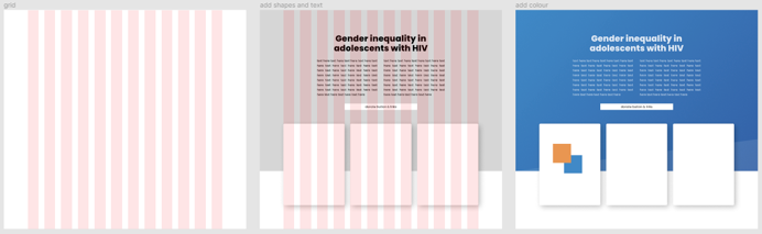 Then I’ll jump into Figma, build a grid for alignment purposes, put the basic shapes and text boxes in to create my layout, and implement a colour scheme (usually inspired by something I’ve seen on Dribbble or in another viz, and followed by a significant amount of time tinkering until I’m happy with it). So this part of the process will look something along the lines of this image below: