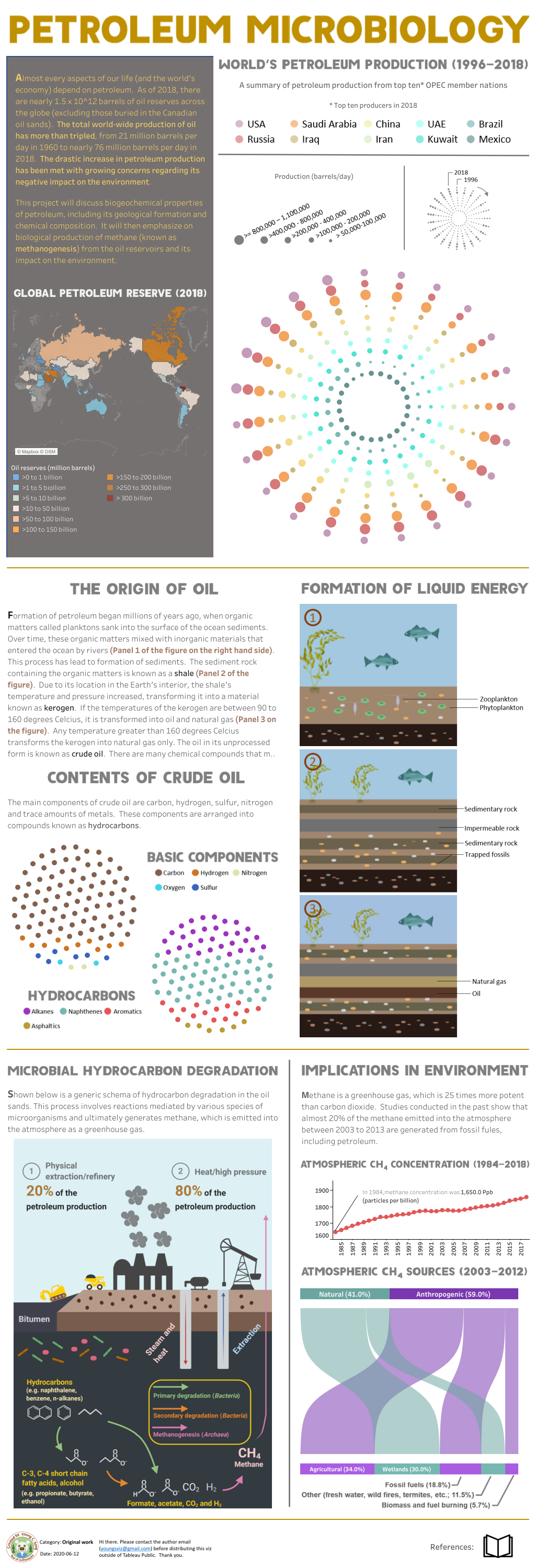 Another Viz that really stood out to me was Petroleum Microbiology by Young Song. This viz genuinely looks like it has just jumped out of the coolest geography textbook ever – perfect for an education initiative! It’s packed with information not only making it an ideal supporting resource for teachers to use alongside the set syllabus, but also ideal for those students who have limited access to expensive textbooks.