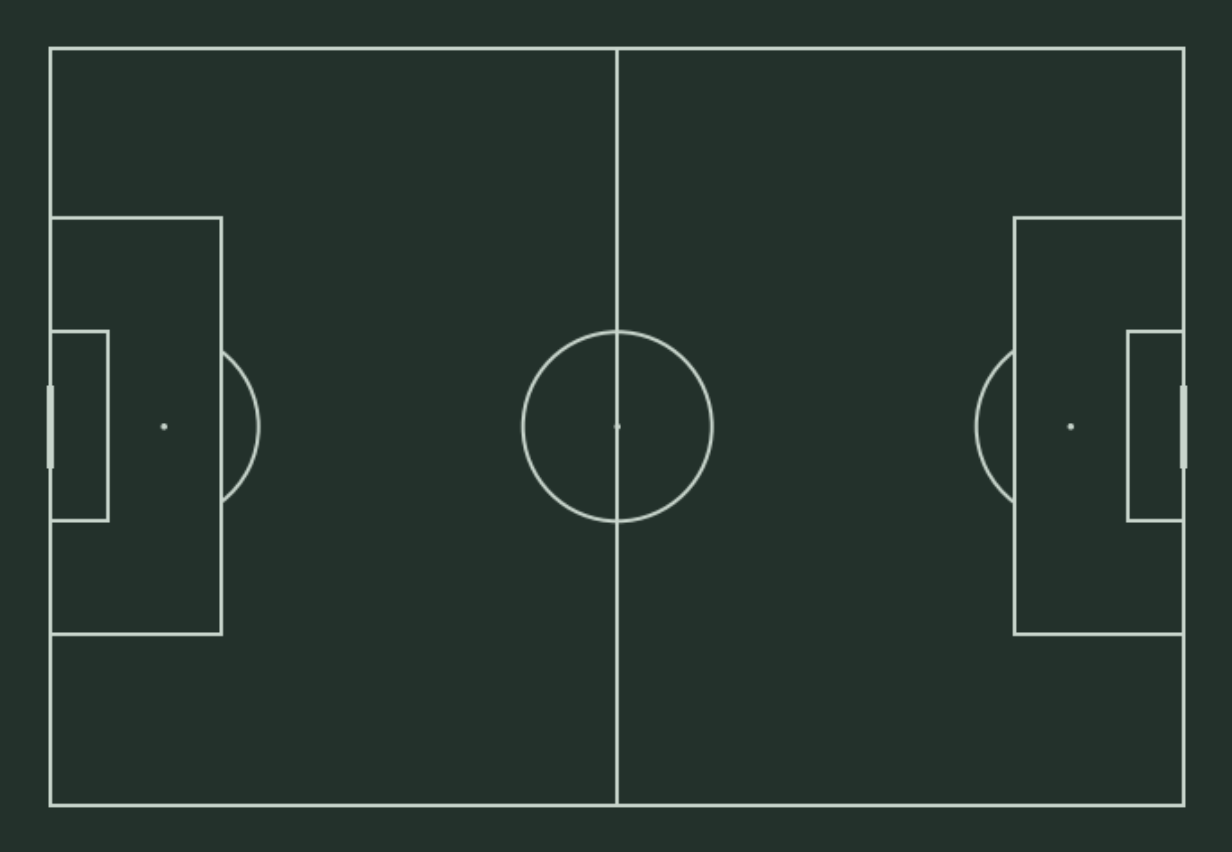 We use a combination of matplotlib and mplsoccer here to create it. The first three lines are actually creating the “canvas” we’ll use and we set the colors we want with the hex code.