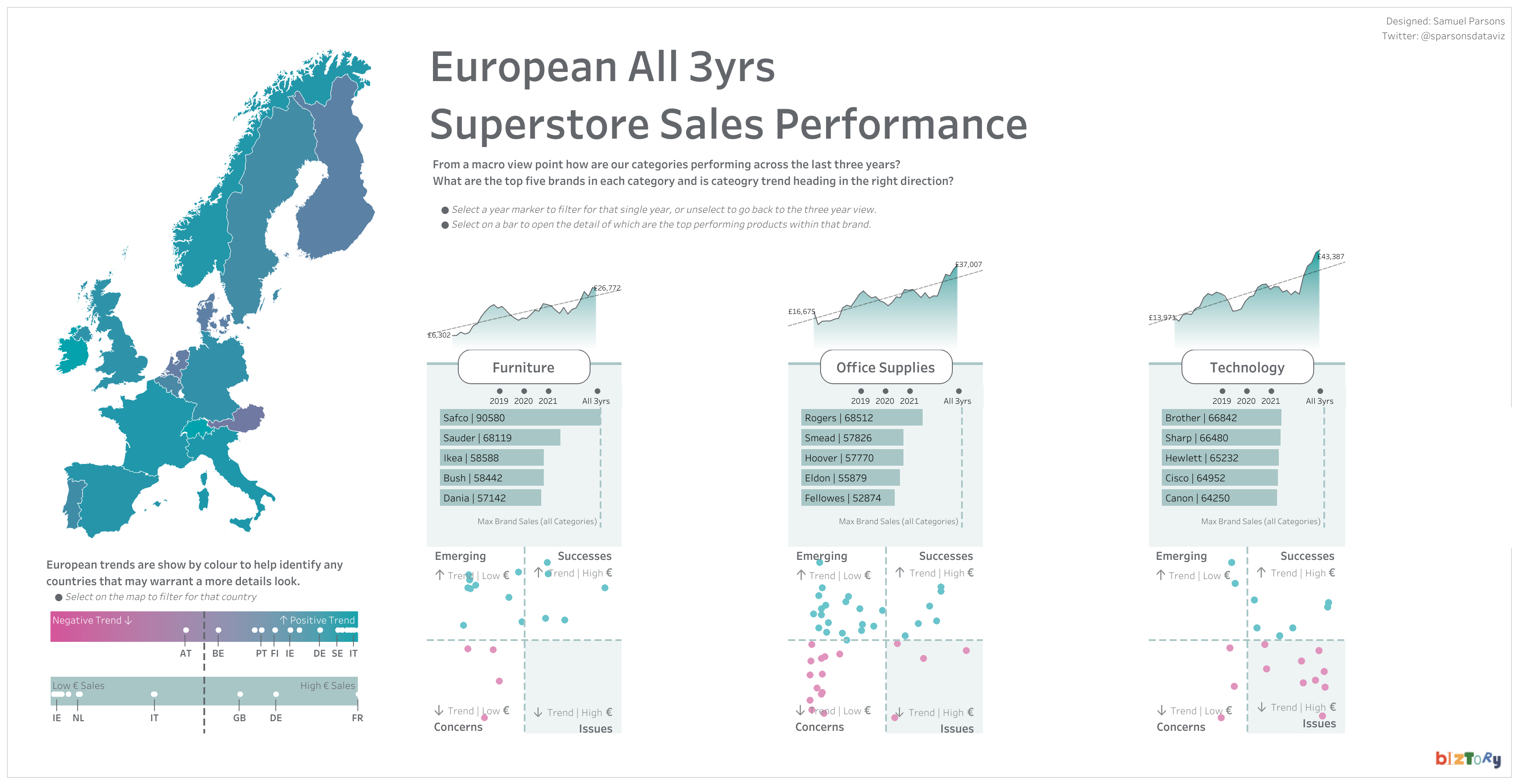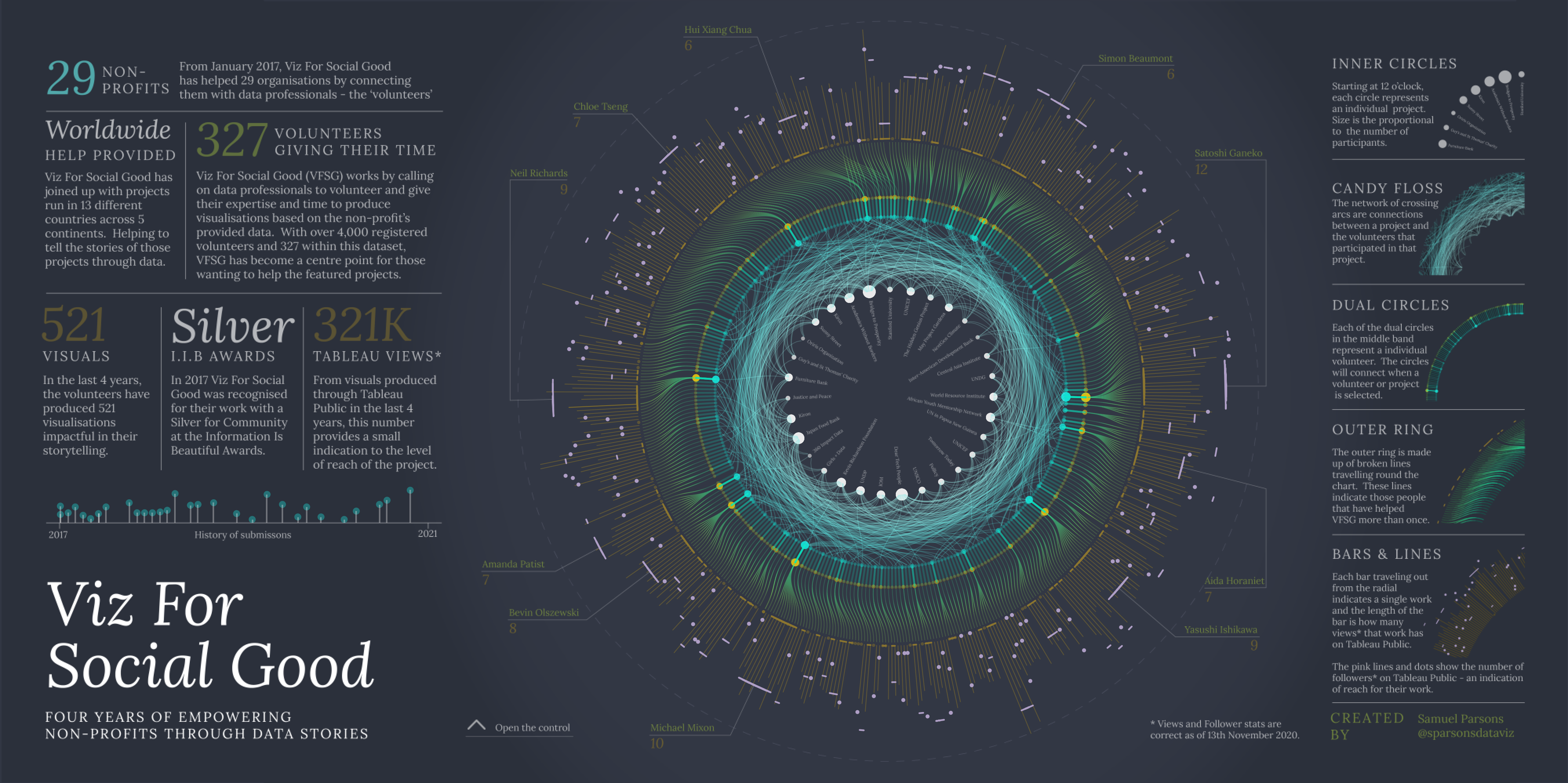 Sam: This is difficult because I have never intentionally set out to create my own ‘Brand’ or ‘Style’, yet I’ve had others say similar things like ‘You can always tell when it is a Sam Parsons viz’. That for me is strange, because I don’t see my work in that way. I’ve guessed before as to what made my work attributable to me, and I’ve come up with questionable tags such as ‘adding lots of little details / flourishes to vizzes’, ‘technically stretching chart techniques’, but I really struggle to put a finger on it as a Brand.