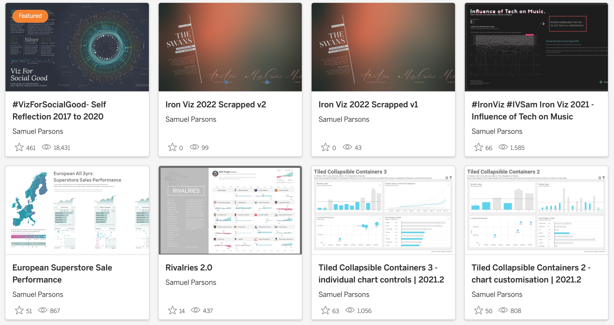 Sam: I have no grand plans for 2022 or any big announcements to tell. I’m just going to continue doing what I do and fit it around the family and daily life as best as I can. One area that I will be looking to improve is my coding ability. Currently I don’t do any SQL, Python or else, and now I feel the time is right to start up-skilling in that area. I hope though that it will impact my ability to output more Tableau Public work.